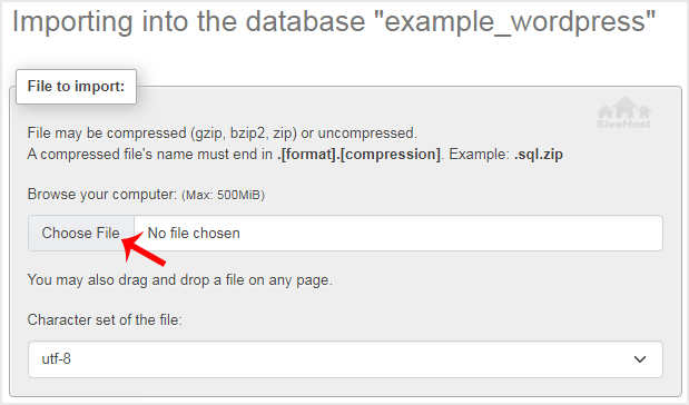 Under File to import, click on Choose File and select SQL file from your computer.
