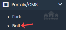 4. On the left side, locate the Portal/CMS category. Click on it and then on the Bolt link that appears.